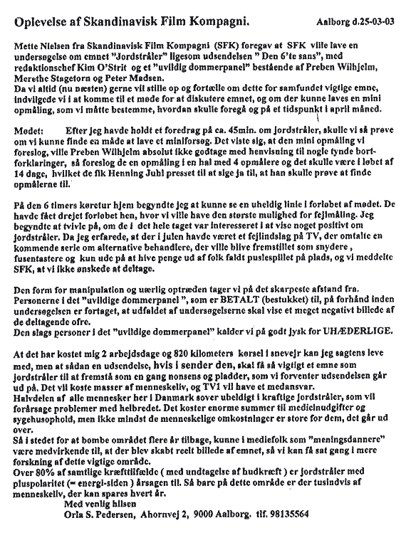 henvendelse til de danske "skeptikere" er blevet ubesvaret.