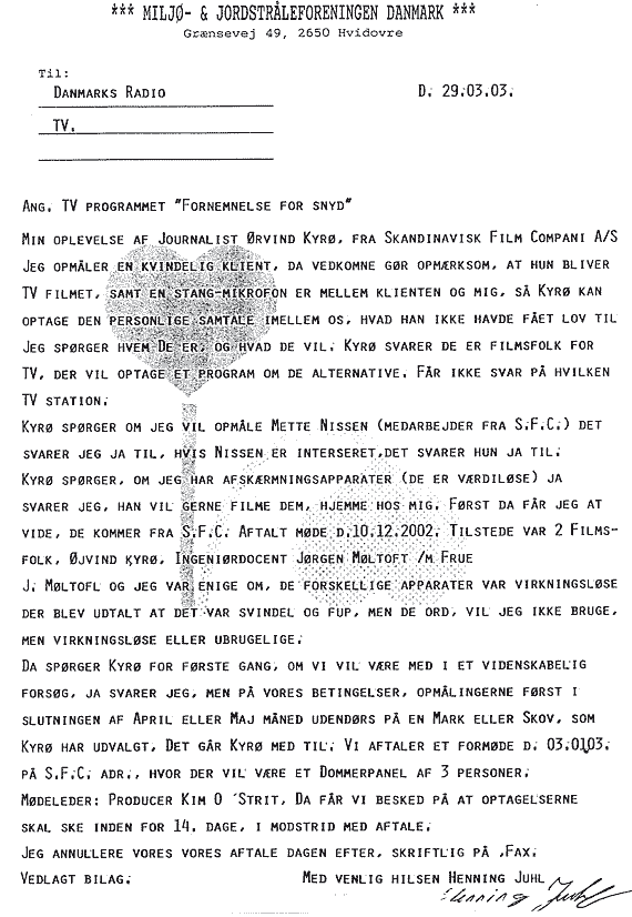 i spidsen, har jeg med dags dato valgt at sende en Klage over uetisk behandling af medvirkende til DRTV´s direktør Jørgen Ramskov, med "henblik på evt. senere behandling i pressenævnet". De 5 behandlere er: